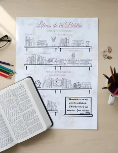 - 2 Tracker o rastreadores coloreables de los libros de la Biblia clasificados por secciones, uno tamaño carta (8.5″ x 11″) y otro tamaño media carta (5.5″ x 8.5″). ¡Marca tu avance de manera creativa!