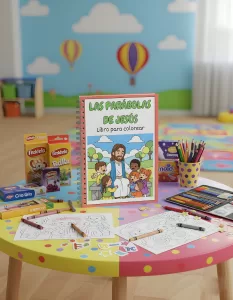 ¡Divertido y lleno de fe! Este libro de colorear cristiano imprimible incluye 32 parábolas con versículos bíblicos y lecciones cortas, diseñado para ayudar a los niños a aprender las enseñanzas de Jesús mientras colorean. Es perfecto para la Escuela Dominical, la educación en casa (homeschool) y el tiempo bíblico en familia. ¡Descarga instantánea, fácil de imprimir y listo para inspirar!
