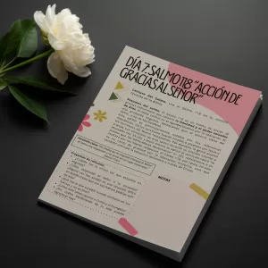 ¡Embárcate en un viaje de fe y agradecimiento! Nuestro Diario de Gratitud Cristiano es más que un simple plan de lectura: es una invitación a sumergirte en la belleza de los Salmos de acción de gracias. Diseñado para nutrir tu alma, este devocional digital de 7 días te guiará a través de versículos seleccionados para transformar tu corazón y fortalecer tu conexión con Dios. Descubre la paz y el gozo que provienen de la gratitud, mientras llenas cada página con tus propias reflexiones y oraciones.